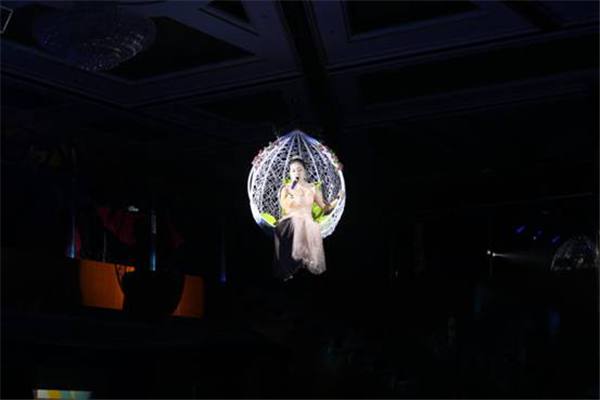 此次文藝匯演的亮點(diǎn),采用真人威亞設(shè)備。人未至,聲已到,隨著歌手從空中徐徐而降,配合干冰舞臺效果,整個過程宛如仙境,美輪美奐。