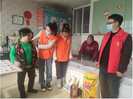 2.興隆村,高齡困境老人石秀玲家,老人已經(jīng)85歲了,還患有腿疼、心臟病、眩暈癥、高血壓,需要常年吃藥維持生命。老人有兩個兒子,老大楊樹發(fā),患有精神障礙一直沒有結(jié)婚,一直由這位可憐的母親來照顧,有時犯病還會毆打母親。還有另外二兒子年輕喪偶,常年待在外地打工。從沒有回來看望過老母親。家里面一片陰霾,我們的到來猶如一絲光,給他們帶來了慰問物資,還幫助老人收拾屋子打掃衛(wèi)生。老人許久沒有出現(xiàn)的笑容也映在了臉上。
